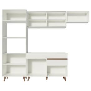 O acabamento é branco, feito em Pintura Poliéster ecológica de alta resistência, que dá maior destaque à tonalidade e conserva a beleza do móvel por mais tempo.