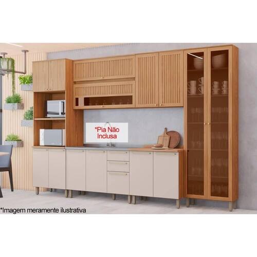 Cozinha Completa Requinte 7 Peças (2 Aéreos + 2 Balcões + 2 Paneleiros + 1 Complemento) CZ104 Nature/Nature/Areia - Henn