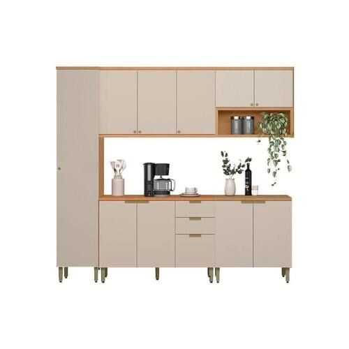 Cozinha Completa Selene 5 Peças (2balcões+2aéreos+1paneleiro) Cp24 Jequitiba/off White Fosco - Linea