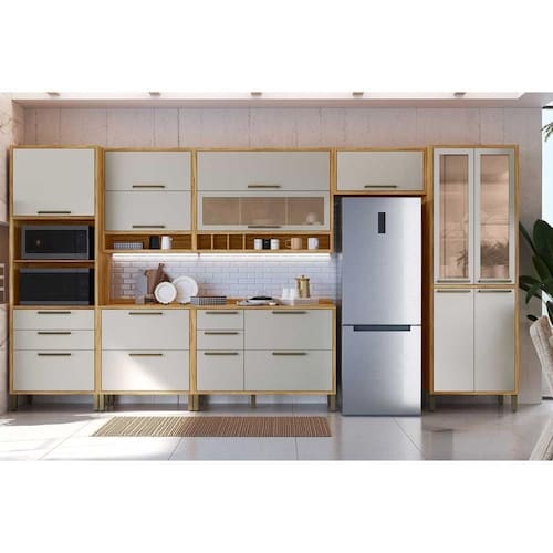 Cozinha Completa Syrah 7 Peças (3Aéreos+2Balcões+1Paneleiro+1TorreQuente) C7P102 Amendoa/Off White - Ronipa
