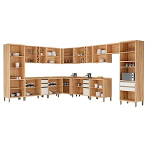 Cozinha Completa Tempranillo 16 Peças (6Aéreos+5Balcões+1Cristaleira+1TorreQuente+3Complementos) C16P80 Amendoa/Off White - Ronipa