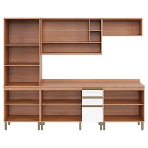 Com a linha Bárbara, é possível ter uma Cozinha que possui diversas referências do móvel planejado como a estética e funcionalidade a um custo acessível e com a praticidade de já estar pronta para a sua casa. Essa configuração com cinco módulos é espaçosa e seus diversos diferenciais comprovam porque ela é uma cozinha tão perfeita: suas portas são equipadas com dobradiças com caneco de 35mm e sistema de amortecimento slow motion para garantir movimentos mais suaves na abertura e fechamento; já as portas basculantes possuem pistão a gás - componente que garante sustentação e na usabilidade. As gavetas contam com corrediças telescópicas sinônimo de firmeza, deslizamento mais suave e abertura de extração total e divisor de talheres. O Paneleiro Torre Quente é robusto e perfeito para manter os eletros ao alcance das mãos. O Armário possui porta basculante ripada, no famoso estilo veneziano, e nichos para acomodar itens especiais. Os Balcões possuem ótimo espaço interno para a acomodação dos mais variados itens. A Cozinha Completa Bárbara é a garantia de qualidade e beleza que você procura.