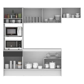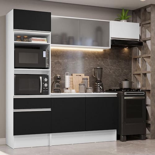 A Cozinha Completa Topazio da Madesa é uma cozinha pensada nos mínimos detalhes. A cozinha combina em ambientes modernos, vintage/retro ou coloridos. Seu aéreo em vidro agrega beleza e sofisticação.