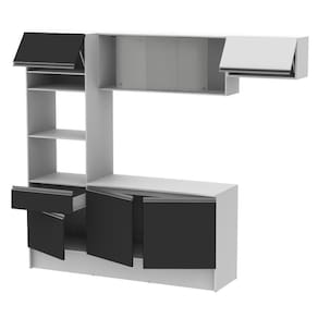 1 torre com nichos para forno e micro-ondas, com 1 gaveta e 2 portas, sendo uma basculante com 1 balcão de pia agregado de 120 cm - com 2 portas