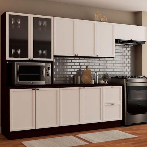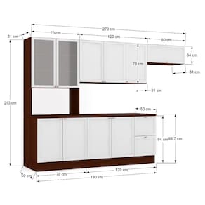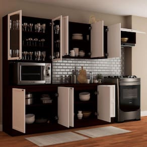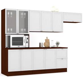 O(a) Cozinha Completa Turim 10 Portas 2 Gavetas com Vidro Nogueira/Branco - Loja é produzido em MDF e MDP na escala de brilho Semi-Brilho, e possui um grau de dificuldade de montagem: Médio.