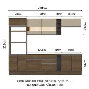 - Profundidade: Balcões e paneleiro 52cm | Aéreos 31cm
