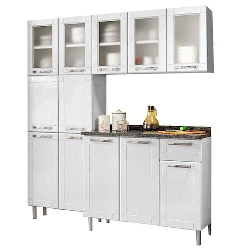 Cozinha de Aço Completa 2 Armários Aéreo,Paneleiro 6 Portas e Balcão 3 Portas 1 Gaveta Multipla Bert