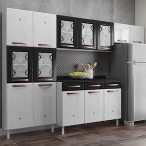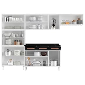 O(a) Cozinha de Aço Completa Mirage New 14 Portas 3 Gavetas Branco/Preto 815471 - Telasul é produzido em MDP e Aço na escala de brilho Brilhante, e possui um grau de dificuldade de montagem: Médio.