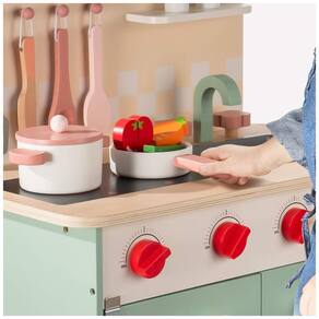 Cozinha de Brinquedo Educativa de Madeira ROBUD para Crianças, Conjunto de Brinquedo de Cozinha, Presente para Meninas e Meninos Verde