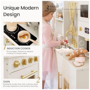 Nova cozinha de jogo em estilo caseiro para se adequar ao estilo moderno da casa, projetamos esta cozinha de brinquedo diferente de outros estilos no . Área operacional maior a cozinha de recreação atualizada permite que três crianças brinquem ao mesmo tempo. As crianças podem cortar ingredientes, organizar ingredientes ou colocar outros acessórios de cozinha de brinquedo na superfície de trabalho. As dimensões da cozinha de brinquedo são 109 x 101 x 35 centímetros e a altura da bancada é de 55 centímetros. Muitas características do jogo A cozinha de madeira está equipada com uma máquina de fazer gelo, cafeteira, micro ondas, fogão, torneira e pia. Ele também vem com um relógio, mesa de tempo, forno e armários. Uma configuração rica pode melhorar a coordenação e a imaginação das crianças. Focamos na qualidade temos requisitos rígidos para a madeira em cada cozinha de jogo. Ele supera bastante os testes de segurança física e química exigidos pelas normas ASTMF 963 e EN 71 dos EUA Marca: Não Informado