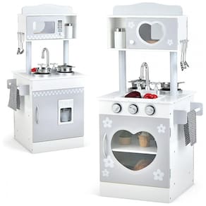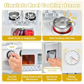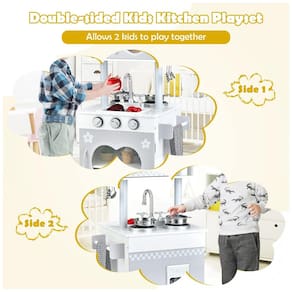 Conjunto de reprodução de cozinha infantil de dupla face Este conjunto de peças de cozinha para crianças 2 em 1 apresenta dois lados para 2 crianças brincarem juntas. Uma criança pode fingir lavar legumes e a outra pode interpretar refeições ao mesmo tempo. A altura da bancada especialmente adaptada 48 centímetros é um presente perfeito para crianças de 3 anos . Simule cenas reais de culinária A hora do jantar acabou. Esta cozinha infantil é projetada com instalações realistas, permitindo que as crianças finjam cozinhar. Primeiro, lave frutas e legumes. Então, comece a cozinhar com panelas. Por fim, ligue o forno ou aqueça os alimentos no micro ondas. Melhor ainda, as crianças podem usar o dispensador de gelo para pegar os cubos de gelo Espaço de zenamento simples Com tampo amplo do gabinete, compartimento de zenamento aberto, armário grande com porta e bancada espaçosa, o conjunto infantil da cozinha oferece amplo espaço para organizar e realocar crianças brinquedos, lanches, probabilidades e fins. Além disso, três ganchos laterais e um conveniente suporte de toalhas laterais aumentarão a flexibilidade de zenamento. Acessórios doces para diversão adicionada Não há necessidade de comprar acessórios, pois o conjunto infantil de brincadeiras de cozinha está completo com 1 xícara e 2 cubos de gelo, 1 panela com tampa, 1 panela, 3 utensílios de cozinha e 1 pano de espanador. Tudo isso pode incentivar muito seu pequeno chef a brincar e aprender a identificar diferentes materiais de cozinha. Presente para educação infantil 3 Este conjunto de cozinha de brinquedo é um brinquedo para presente de educação infantil nunca errado para crianças de 3 anos. As crianças podem brincar com amigos ou pais e exercer suas habilidades de comunicação e melhorar a interação pai filho, a coordenação, bem como a criação e a imaginação Marca: Não Informado