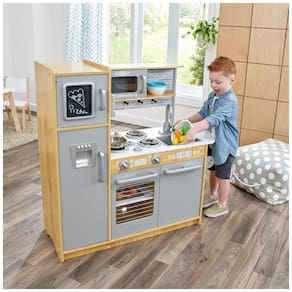 Hora de cozinhar um pouco de diversão. Nossa cozinha KidKraft Uptown Natural play tem uma aparência moderna e moderna que os jovens chefs certamente vão adorar. Todo aparelho é interativo, incluindo portas que se abrem e fecham, botões que giram e clicam e um quadro negro na porta do freezer. Criada em madeira composta, esta cozinha contemporânea é uma adição robusta e elegante ao tempo de reprodução.