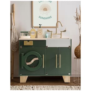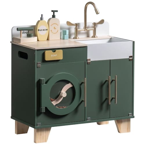 Explore um mundo de diversão e aprendizado com o conjunto de máquina de lavar da ROBUD, repleto de acessórios variados! Desde um charmoso frasco de alvejante de brinquedo em madeira até detergente, ferro de passar e dois blocos de detergente, as opções prometem uma experiência de brincadeira vívida e realista para as crianças. Deixe a imaginação deles voar enquanto participam de diferentes cenários de jogo, estimulando a criatividade e habilidades práticas em um ambiente de lavanderia simulado. Descubra características inteligentes que elevam a interação e organização, como o armário com duas portas sob a pia que oferece amplo espaço de armazenamento para brinquedos e itens de lavanderia, promovendo áreas de jogo organizadas e fácil acesso aos acessórios. A máquina de lavar possui um design interior que imita os processos de lavagem da vida real com um som animado, aprimorando a experiência de jogo imersiva e interativa para os pequenos. A Coleção Vintage Green oferece oportunidades ilimitadas para mentes jovens explorarem e criarem, proporcionando momentos valiosos entre pais e filhos. Construída com materiais premium, a Cozinha Infantil ROBUD garante a segurança da criança em cada momento de brincadeira. Ao contrário das alternativas de plástico frágil, este resistente brinquedo de cozinha possui uma estrutura durável que promete diversão duradoura e estabilidade. Presenteie com a Cozinha de Brincar ROBUD - ideal para aniversários, feriados ou ocasiões especiais, medindo aproximadamente 49.3x58.5x49.3 cm. Construir e decorar este tesouro juntos promove momentos preciosos entre pais e filhos, garantindo um tecido de sorrisos e memórias preciosas.