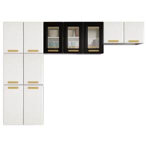 Apresentamos a Cozinha em L Ágata 260cm com Vidro 817460 da Telasul com o poder de transformar qualquer espaço. Funcional e repleta de estilo, ela é desenvolvida com materiais de alta qualidade e processos que aumentam sua longevidade. Possui vidros temperados, decorados com harmoniosas serigrafias douradas. Os puxadores merecem um destaque especial: são imponentes, modernos e apresentam um acabamento recartilhado. Nessa configuração com três módulos (paneleiro duplo, armário triplo e armário duplo baixo), você terá muito espaço para armazenar seus utensílios e alimentos de forma organizada e eficiente. Esta cozinha é fabricada em aço e recebe uma camada de pintura eletrostática e anticorrosiva, proporcionando um acabamento brilhante – esse tipo de tratamento não garante apenas um bonito visual, mas também maior durabilidade do móvel. A Cozinha Ágata é uma escolha inteligente e segura para o ambiente mais amado da sua casa.