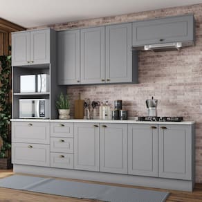 Cozinha Compacta 7 Portas 3 Gavetas Emily Cinza/Calcare