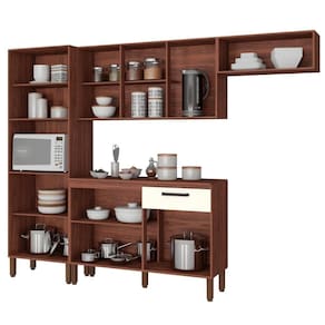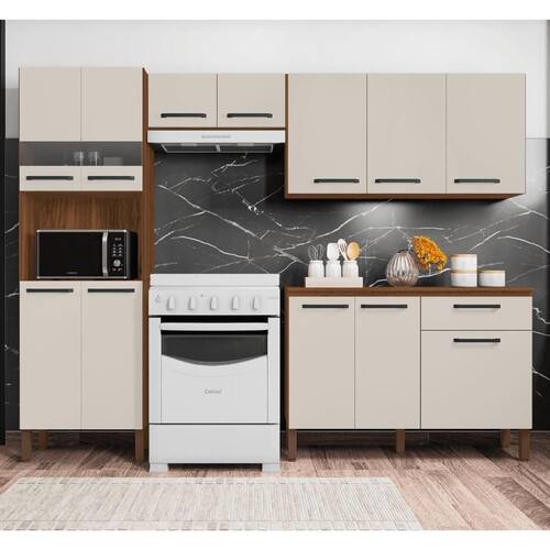 O Armário possui 12 portas sendo duas com vidro reflecta e 1 gaveta destaca-se por sua praticidade e eficiência de uso, podendo ser utilizada como complemento de cozinha.