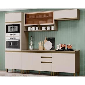 Cozinha Completa de Canto Americana 10 Peças com Cristaleira e Tampo Nature - Móveis Henn