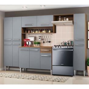 Para completar, a cozinha conta com pés reguláveis em PVC e rodapé removível em MDP de fácil encaixe, para retirar na hora de realizar a limpeza.