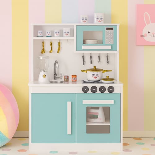 Cozinha Infantil Brinquedo Educativo Completa com Armário Fogão Pia e Microondas - Cor: Menta