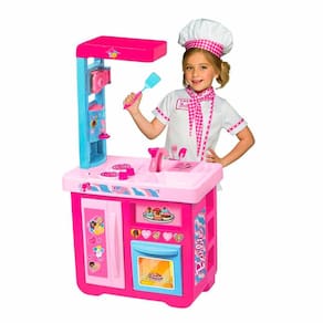 Cozinha Infantil Completa - Barbie Chef Master - Cotiplás: as crianças se divertem muito brincando com a Cozinha Master da Barbie. Esta cozinha infantil possui tamanho é proporcional ao das crianças. Possui vários acessórios que proporcionam uma brincadeira mais divertida. A Cozinha da Barbie vem com fogão com botões que giram e pia com uma torneira que sai água de verdade. Repleta de acessórios, essa cozinha infantil de plástico da linha Barbie Chef vai aguçar a imaginação das pequenas cozinheiras. Detalhes: • Bancada gourmet: para você brincar de fazer as melhores refeições de faz de conta • Suporte de celular: coloque o celular para assistir vídeos de receitas enquanto brinca • Fogão e forno: cozinhe seus pratos favoritos no fogão • Cafeteira: Sai água de verdade na cafeteira • Geladeira: guarde as frutas e legumes na geladeira • Pia com torneira: E depois da brincadeira, é só lavar toda a louca com a pia com torneira que sai água de verdade • Acessórios: acompanha lindos acessórios como panelinhas, pratinhos e utensílios de cozinha Informações: • Produto: Cozinha Master da Barbie • Marca: Cotiplás • Coleção: Barbie Chef • Tipo: Cozinha de Brinquedo com Acessórios • Categoria: Brincadeira de Casinha • Subcategoria: Cozinha Infantil • Tamanho: 92cm • Conteúdo: - 01 cozinha - 01 frigideira - 01 panela - 01 tampa - 01 colher grande - 01 espátula - 02 colheres de café - 02 pires - 02 xicaras - 02 cápsulas de café • Recomendação: para crianças a partir de 03 anos de idade Especificações: • Referência: 2490 • Código de Barras: 7896964624900 • Embalagem (C x A x L): 50 x 65 x 21 cm • Embalagem (Peso): 3.2 kg • Material / Composição: Plástico • Registro: 008360/2021 • Certificado: Órgãos Autorizados - OCP´S (Organismos de Certificação de Produtos) Aviso: • As imagens são meramente ilustrativas • Os pesos, tamanhos e medidas são aproximados • As cores e estampas dos produtos podem ter variações • As informações são de responsabilidade do fabricante ou fornecedor