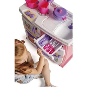 Micro-ondas com som Forno grande com grade Gaveta com divisor de talheres Gaveta para organizar a cozinha Lava louças com escorredor removível Bancada com fogão e torneira que sai água de verdade! Tateti, presente em todos os momentos!