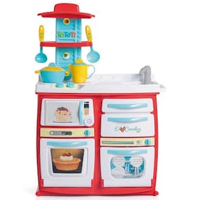 Micro-ondas com som Forno grande com grade Gaveta com divisor de talheres Gaveta para organizar a cozinha Lava louças com escorredor removível Bancada com fogão e torneira que sai água de verdade! Tateti, presente em todos os momentos!