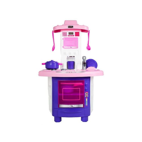 Cozinha Infantil de Brinquedo + Acessórios - Variações Rosa e MasterchefA Cozinha Infantil possui peças lúdicas ideais para o desenvolvimento da imaginação e criatividade das crianças.Selecione a variação da cozinha desejada no anúncio e presenteie quem você mais amaPossui micro-ondas, duas bocas de fogão, pia com torneira que sai água de verdade, forno, pratinhos, copinhos e diversos utensílios básicos.Acompanha figurinhas para colagem. Especificações:Marca : Pais e FilhosMaterial: PlásticoDimensões cozinha montada: 46cm comprimento x 26cm largura x 70cm altura- Conteúdo da embalagem:- 1 Cozinha- 2 Panelas com tampa- 1 Faca- 1 Garfo- 2 Pratos- 2 Copos- 2 Escumadeiras- 1 Espátula- 1 ConchaRecomendado à partir de 03 anos de idade
