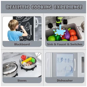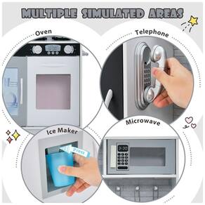Proporcione momentos de diversão e aprendizado para as crianças com nossa cozinha de faz de conta Este brinquedo é ideal para crianças de 3 a 6 anos e possui diversos itens que proporcionam uma experiência de cozinha envolvente, como micro ondas, pia, fogão, máquina de fazer gelo, lava louças e forno. Além disso, o quadro negro e o telefone trazem diversão extra. Os botões giratórios com sons reais são intrigantes e ajudam no desenvolvimento da imaginação e criatividade das crianças, além de promover a capacidade prática através de dramatizações.