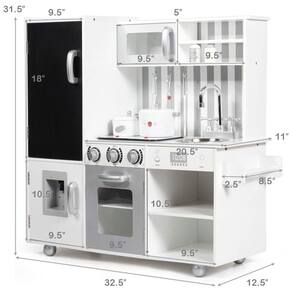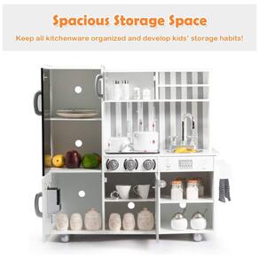 As prateleiras abertas de 2 camadas são perfeitas para colocar utensílios de cozinha, e há muito espaço no forno, micro ondas, geladeira e máquina de fazer gelo, que pode exercitar a capacidade de classificação e organização das crianças. Com tanto espaço de armazenamento, as crianças não vão bagunçar o conjunto da cozinha durante o entretenimento.