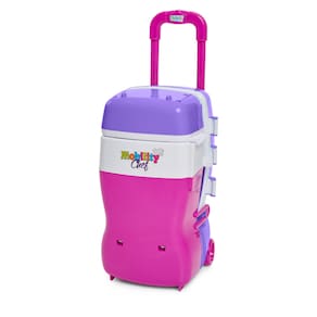 Cozinha itinerante. Uma super maleta que se transforma em uma cozinha completa! Tem fogão, forninho, pia, gavetas, torradeira e uma geladeira com filtro de água na porta que sai água de verdade. Além dos utensílios de cozinha a brincadeira fica completa com as comidinhas do faz de conta que acompanha a maleta (frutinhas e caixinhas). A Mobility Chef tem alça retrátil e rodinhas para os pequenos (as) chefs levarem a brincadeira onde quiser! Tateti, presente em todos os momentos! Contém: