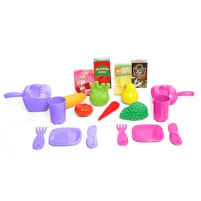 1 Mobility Chef 2 Panelinhas com tampa 3 Frutas 4 Caixinhas 2 Pratos 2 Copos 2 Facas 2 Garfos Dimensões do brinquedo: 27 x 23,5 x 42 cm