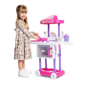 Esse equipamento de brincar faz de conta se destaca por seu design colorido e divertido, combinando Roxo e Rosa vibrantes que atraem meninas, tornando cada momento de jogo mais envolvente.