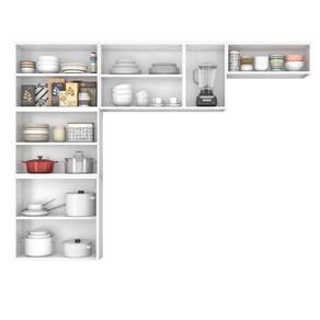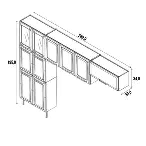 Dimensões do produto montado: Altura 1,95 | Largura 2,80 | Profundidade: paneleiro 0,30 ? armário aéreo 3 portas 0,30 ? armário aéreo 1 porta 0,30 - balcão 0,52