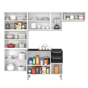 Dimensões do produto montado: Altura 1,95 | Largura 2,80 | Profundidade: paneleiro 0,30 ? armário aéreo 3 portas 0,30 ? armário aéreo 1 porta 0,30 - balcão 0,52
