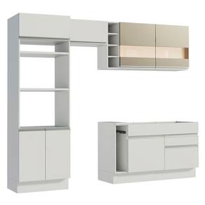 - Itens inclusos: 1 Torre-quente com dois nichos para forno e micro-ondas | 1 nicho menor e três portas, sendo uma basculante | 1 Armário aéreo com uma porta basculante | 1 Adega | 1 Armário aéreo com duas portas com detalhe em vidro Reflex | 1 Balcão porta-panos com tampo de MDP em pintura Mood | 1 Balcão de pia com duas gavetas e uma porta, não acompanha tampo
