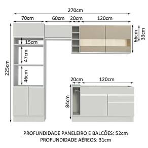 - Profundidade: Torre e balcões inferiores 52cm | Aéreos 31cm