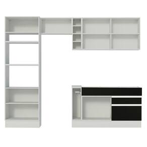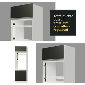 - Itens inclusos: 1 Torre-quente com dois nichos para forno e micro-ondas | 1 nicho menor e três portas, sendo uma basculante | 1 Armário aéreo com uma porta basculante | 1 Adega | 1 Armário aéreo com duas portas com detalhe em vidro Reflex | 1 Balcão porta-panos com tampo de MDP em pintura Mood | 1 Balcão de pia com duas gavetas e uma porta, não acompanha tampo