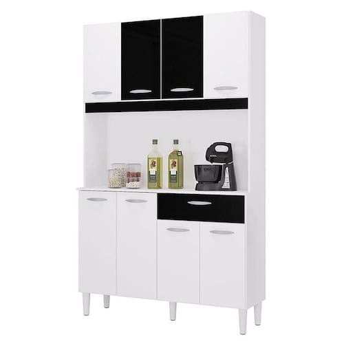 Armário para Cozinha Cássia 8 Portas Branco Preto - Poquema