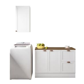 Cozinha Modulada 2 Peças 3 Portas 2 Gavetas Balcão com Tampo Unna Branco