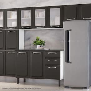 O Balcão possui 3 Portas e 2 Gavetas, o Armário Aéreo possui 3 Portas e duas prateleiras com espaço ideal para guardar mantimentos, panelas, potes, utensílios outros objetos que são essenciais no preparo de suas receitas.