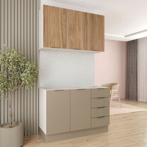 1x Balcão Pia 120cm sem Tampo com Rodapé Puxador 150mm Ipanema Cinza Trama/Branco Largura: 120 cm Altura: 83,5 cm Peso: 42,01 kg Profundidade: 51,5 cm Necessita Montagem: Sim