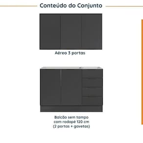 1x Balcão Pia 120cm sem Tampo com Rodapé Puxador 150mm Ipanema Grafite Trama/Branco Largura: 120 cm Altura: 83,5 cm Peso: 42,01 kg Profundidade: 51,5 cm Necessita Montagem: Sim