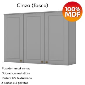 Diferenciais: Puxadores em metal zamac, dobradiças metálicas com amortecimento, corrediças telescópicas, instalação suspensa com ferragens inclusas.