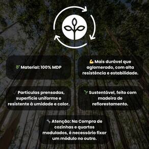 INFORMAÇÕES ADICIONAIS: *ATENÇÃO: Não trabalhamos e não nos responsabilizamos pela montagem do móvel. Antes da montagem conferir se o produto está de acordo com o que comprou, produto montado e danificado pela montagem não será aceito troca. Montagem e instalação por conta do comprador. **As imagens ambientadas são meramente ilustrativas e podem apresentar itens que não compõe o produto. As cores do produto podem variar de acordo com o monitor, a iluminação do ambiente ou sua percepção visual. ***Limpeza: Deve ser feita com pano macio e seco ou levemente umedecido com água e sabão neutro. Não devem ser utilizados abrasivos como palha de aço e objetos cortantes. Garantia para defeitos de fabricação conforme Código de Defesa do Consumidor.