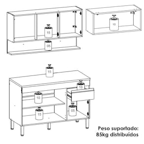 Cozinha Modulada 3 Peças, estilo moderno em módulos que se adaptam ao seu espaço! Produzido em MDP (15mm) com acabamento em pintura UV texturizada. Composta por 07 portas totais (portas superiores com sistema passante), gaveta com corrediças telescópicas, nicho decorativo, uma prateleira interna e puxadores em perfil alumínio (no balcão). Os pés reguláveis são em plástico resistente. Este produto será entregue em 05 volumes.