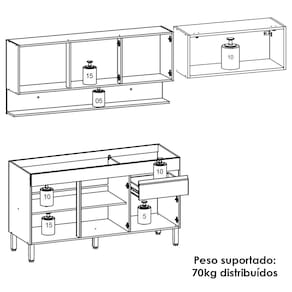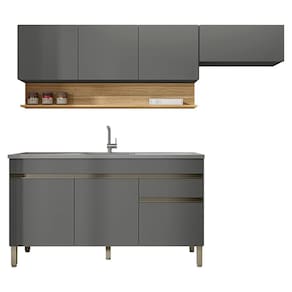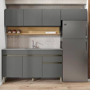Cozinha Modulada 3 Peças, estilo moderno em módulos que se adaptam ao seu espaço! Produzido em MDP (15mm) com acabamento em pintura UV texturizada. Composta por 07 portas totais (portas superiores com sistema passante), gaveta com corrediças telescópicas, nicho decorativo, uma prateleira interna e puxadores em perfil alumínio (no balcão). Os pés reguláveis são em plástico resistente. PIA/TAMPO NÃO INCLUSOS. Este produto será entregue em 04 volumes.