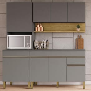 Cozinha Modulada 3 Peças, estilo moderno em módulos que se adaptam ao seu espaço! Produzido em MDP (15mm) com acabamento em pintura UV texturizada. Composta por 08 portas totais (portas superiores com sistema passante), gaveta com corrediças telescópicas, nicho decorativo e nicho para microondas/forno, prateleiras internas, passa fio embutido e puxadores em perfil alumínio (portas inferiores). Os pés reguláveis são em plástico resistente. Este produto será entregue em 05 volumes.