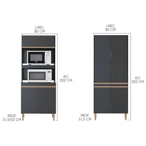 Armario Paneleiro Cozinha Sabrina 80x202cm MDP Preto 0452 Menu Moveis