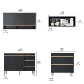 Nicho Multiuso para Cozinha Sabrina 80x30cm MDP Preto Menu Moveis