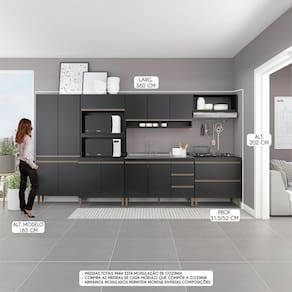O Balcao Sabrina foi desenvolvido para atender todas as suas necessidades do dia a dia com um design moderno, funcionalidade e versatilidade. A cozinha preta e uma tendencia e foi arquitetada para facilitar a sua rotina diaria mantendo seu ambiente organizado e aconchegante. Por se tratar de um modulo de cozinha pode ser ajustado conforme o seu espaco disponivel e montar diversas composicoes, deixando sua cozinha mais aconchegante. O Balcao e produzido com materiais de excelente qualidade, garantindo a durabilidade e vida util. O melhor em moveis no design atual aliando conforto, qualidade e otimos precos, so na Menu Moveis!